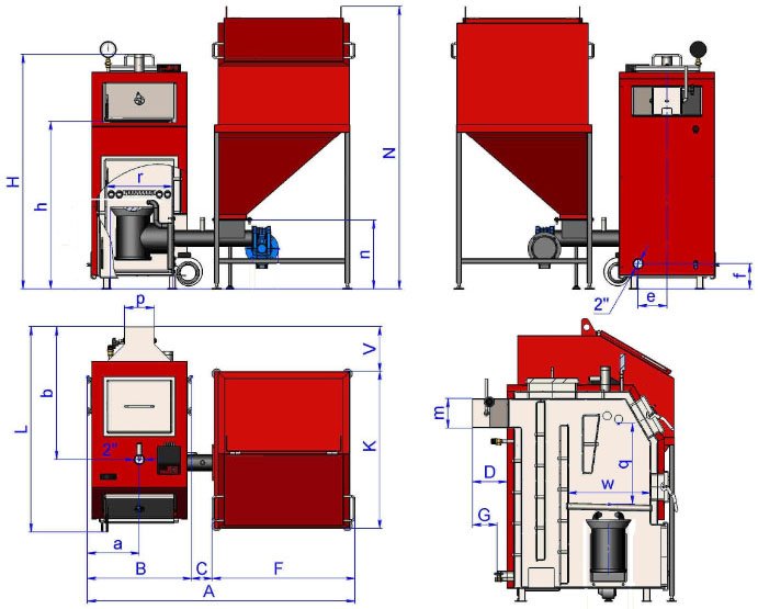 Конструкція котла передбачає його експлуатацію разом з електронним пультом керування, вентилятором наддування та приводом шнека.